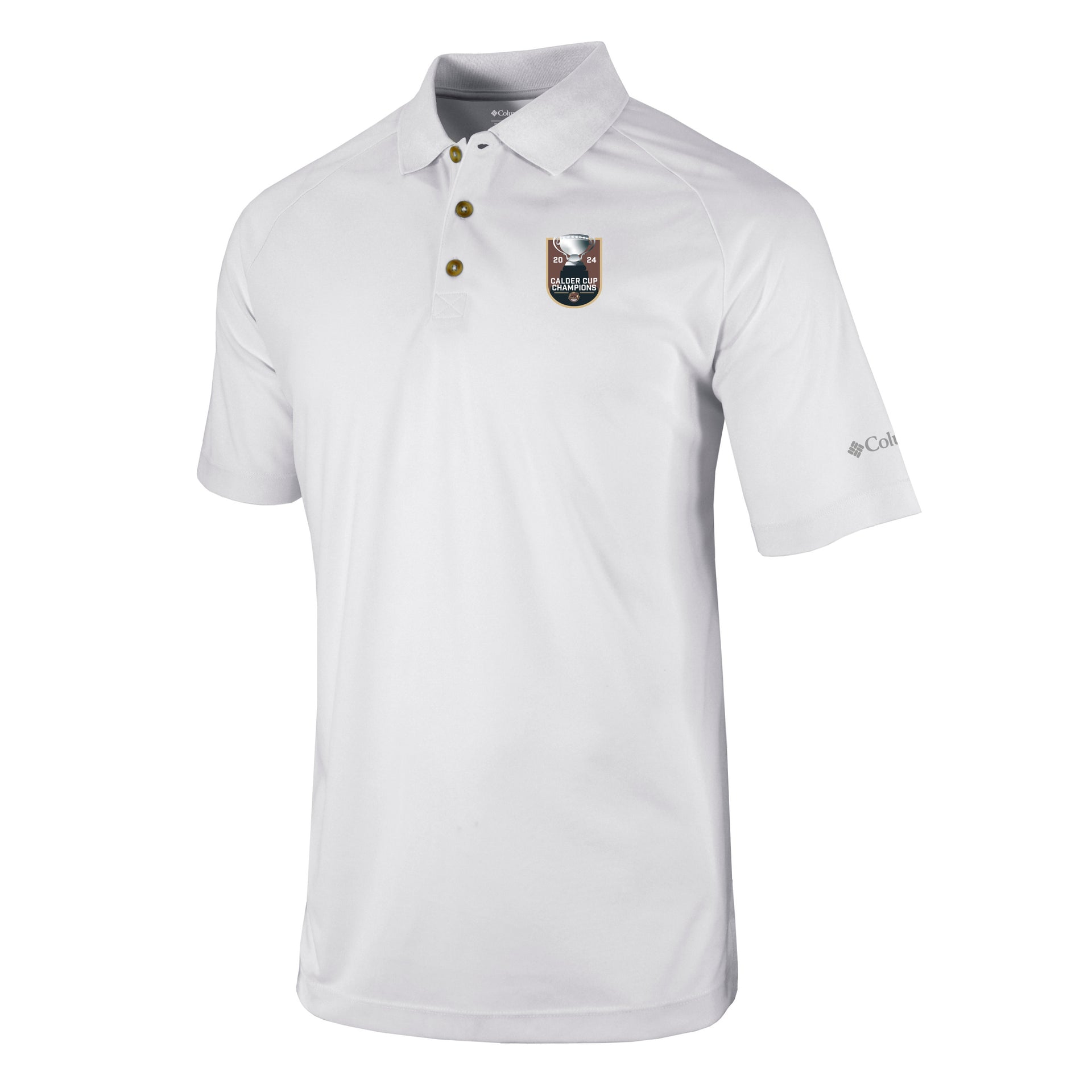 Look sharp and feel your best in this offering from Columbia Sportswear. This short sleeve polo is 100% polyester and features a heat seal print of the Hershey Bears 2024 Calder Cup Champions logo on the front left chest and Columbia Logo detailing on the left sleeve.