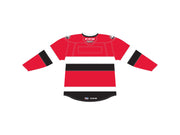 The CCM Quicklite Belleville Senators Red Premier team color jersey is made of high-quality polyester two-way stretch pique fabric and has solid mesh inserts for ventilation. This officially licensed jersey is engineered to duplicate the on-ice team jersey. The front crest is embroidered just like the authentic jersey and the single layer screen printed tackle twill shoulder patches (where applicable) are applied directly to the jersey.