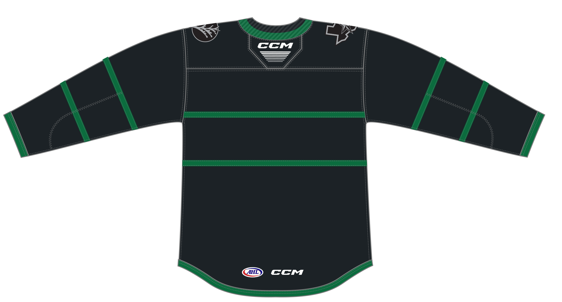 The CCM Quicklite Texas Stars Premier Black Jersey is made of high-quality polyester two-way stretch pique fabric and has solid mesh inserts for ventilation. This officially licensed jersey is engineered to duplicate the on-ice team jersey. The front crest is embroidered just like the authentic jersey and the single layer screen printed tackle twill shoulder patches (where applicable) are applied directly to the jersey.
