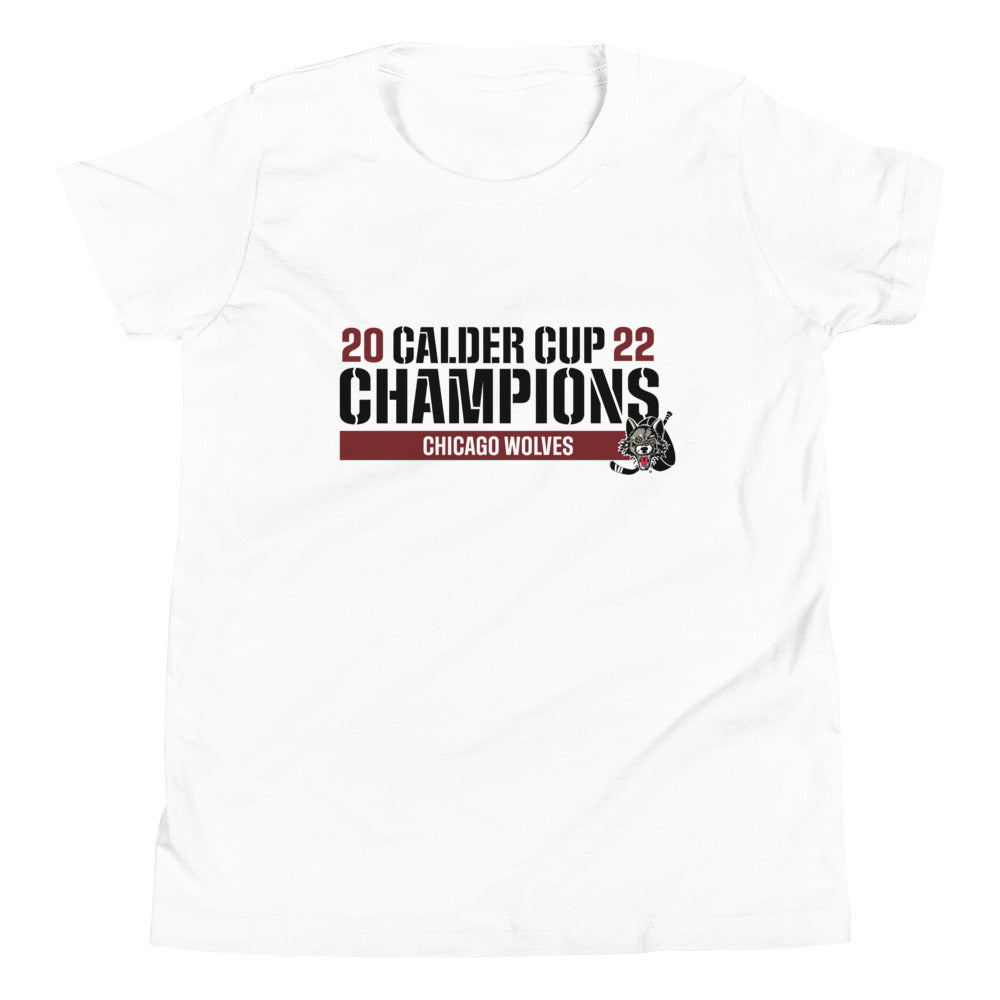 Chicago Wolves 2022 Calder Cup Champions Raise the Bar Youth Short Sleeve T-Shirt