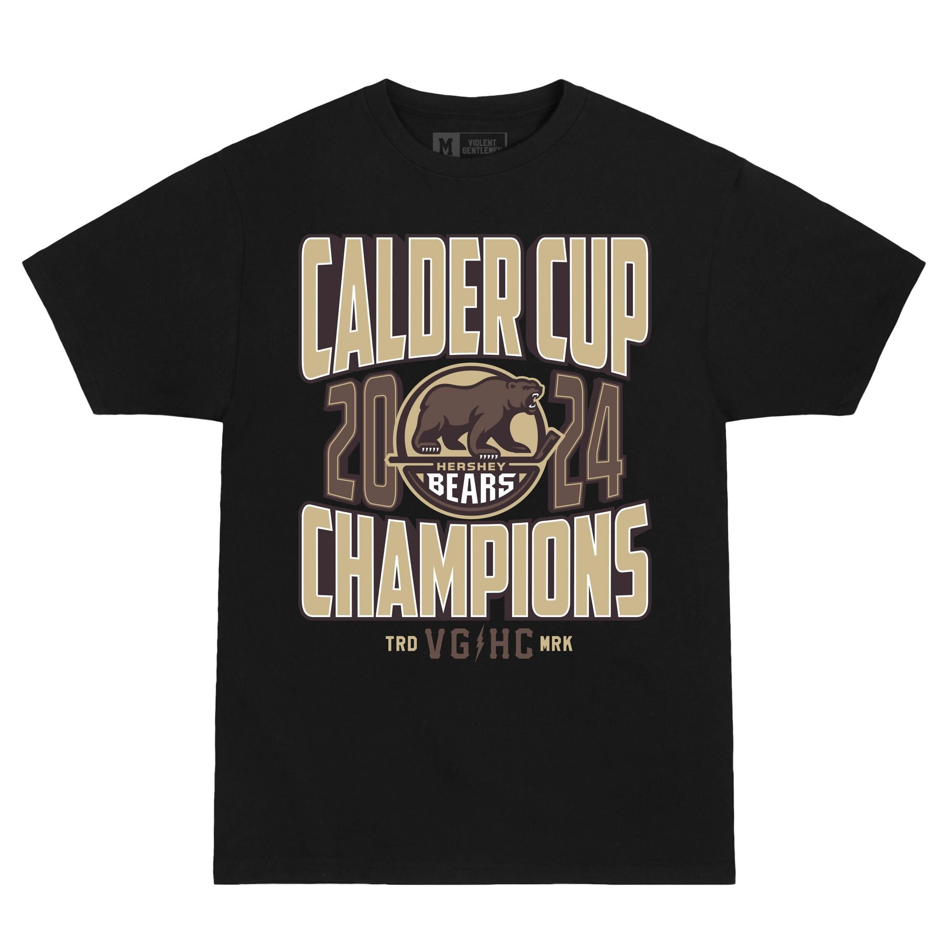 The Hershey Bears are 2024 Calder Cup Champions! Celebrate their championship with this short sleeve t-shirt from Violent Gentlemen. This t-shirt features the Bears Calder Cup Champions graphic on the front.