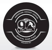 This puck features the 2026 AHL All-Star Challenge logo printed on the front and the AHL 90th anniversary logo on the back. The 2026 AHL All-Star Classic is hosted by the Rockford IceHogs. Officially licensed by InGlasCo.